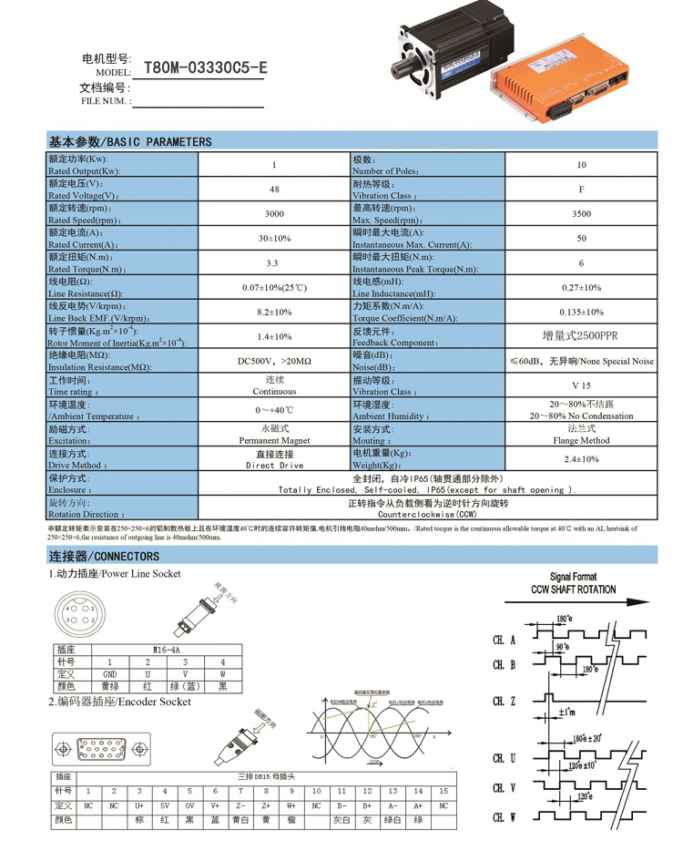 1KW直流伺服電機T80M-03330CE-E